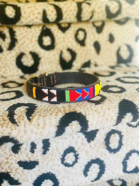 Vtg Beaded Leather Dog Collar